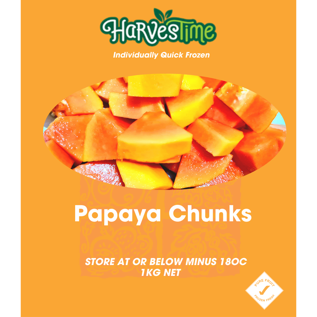 Discover the tropical, buttery sweetness and soft texture of our Papaya Chunks. This orange-fleshed fruit is not only delicious but also incredibly good for you; it is rich in vitamins C and A, and contains the digestive enzyme papain, which aids in breaking down proteins and promotes gut health. Enjoy it blended into tropical smoothies, added to fruit salads, or simply thawed with a squeeze of lime for a refreshing and healthy snack. Its natural tenderness also makes it an excellent choice for pureeing into baby food. A delicious and digestive-friendly tropical treat.